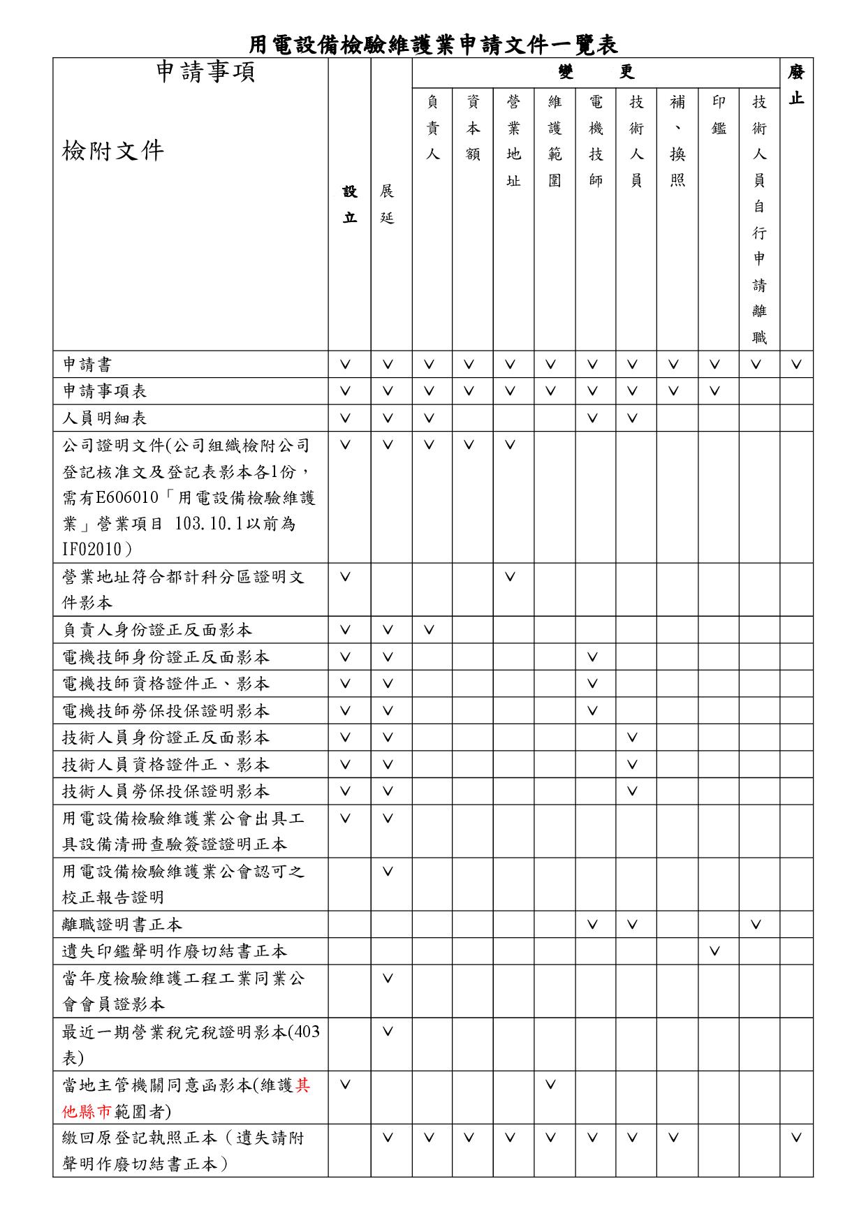登記申請須知如附(用電設備檢驗維護業登記應備文件及注意事項)